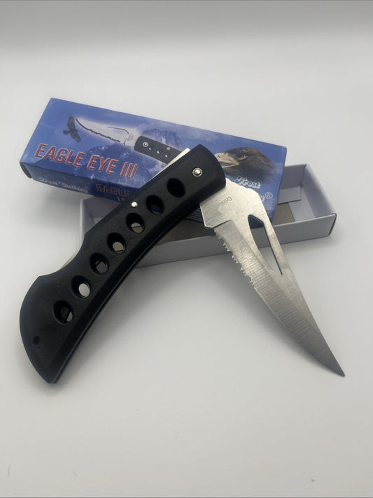 Pocket Knife Lock Back 5" New Eagle Eye III Half Serrated Frost Cutlery 15-109B