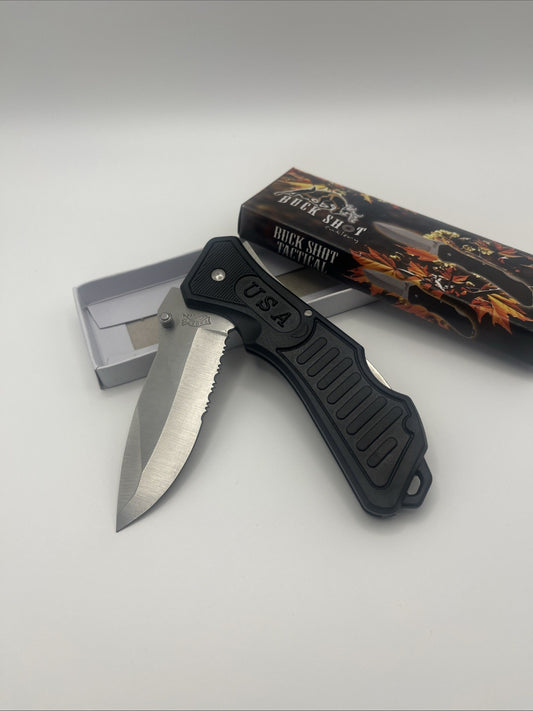 Buck Shot Cutlery Tactical Mustang Trapper Folding Knife New in Box #18-285B