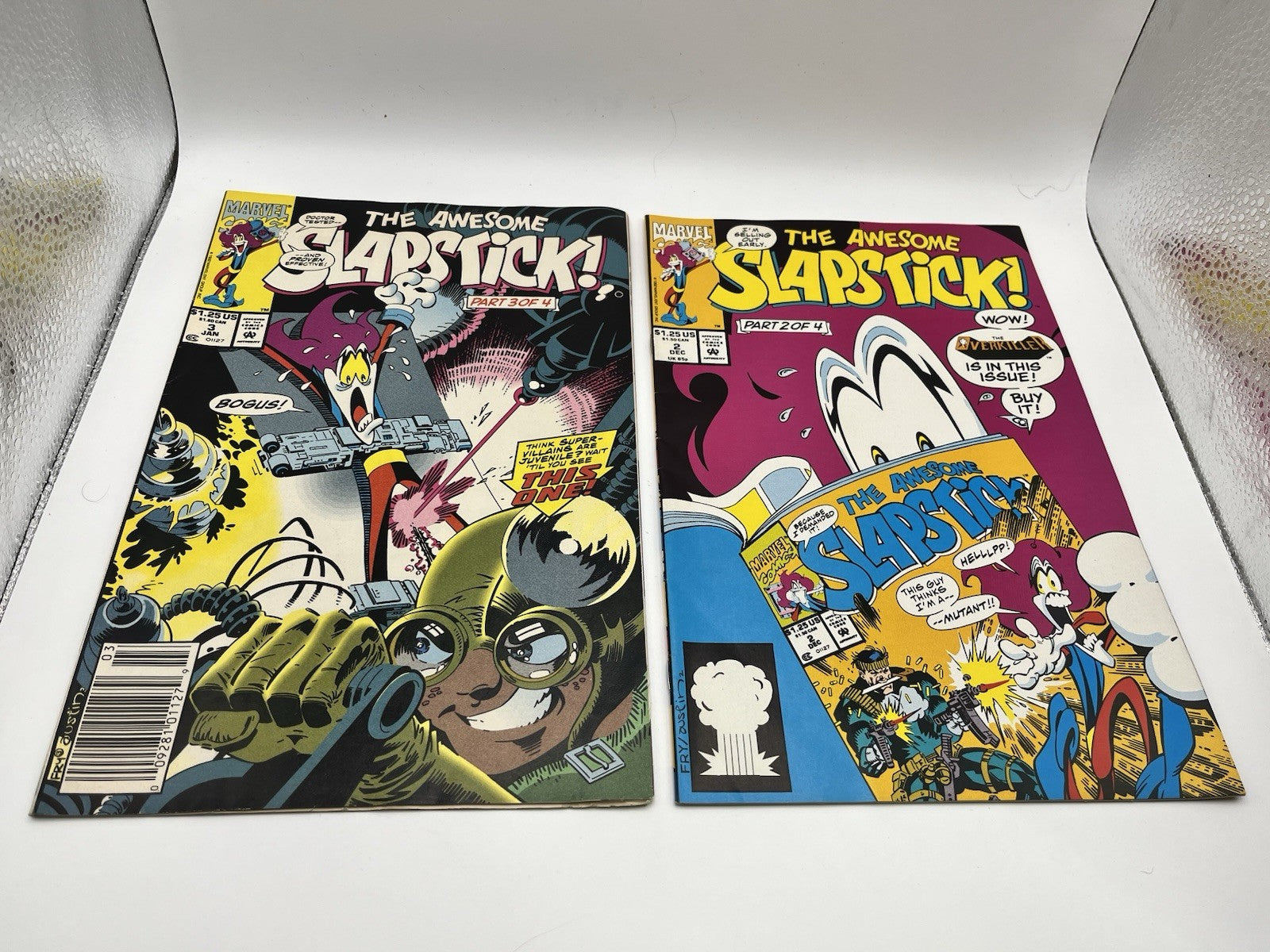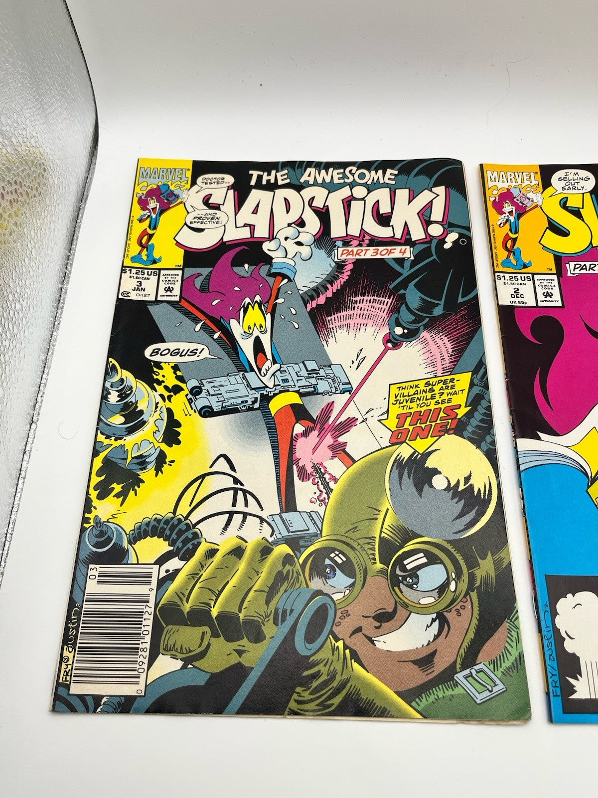 The product is a pair of vintage Marvel comic books featuring the character Slapstick, published by Marvel Comics in the US Comics tradition. The series title is Marvels, adding to the collection of comic book enthusiasts and collectors interested in classic Marvel stories. With a focus on humor and adventure, these comic books offer a nostalgic look back at the early days of the Marvel universe and provide a unique glimpse into the world of superheroes and slapstick humor.